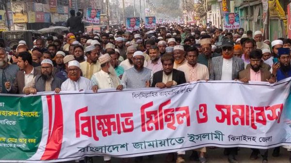 মাজেদ রেজা বাঁধন বাংলাদেশ জামায়াতে ইসলামীর সাবেক ভারপ্রাপ্ত সেক্রেটারি জেনারেল এটিএম আজহারুল ইসলামের মুক্তির দাবিতে ঝিনাইদহ জেলা জামায়াতের উদ্যোগে একটি বিক্ষোভ মিছিল ও সমাবেশ অনুষ্ঠিত হয়েছে। কেন্দ্রীয় কর্মসূচির অংশ হিসেবে