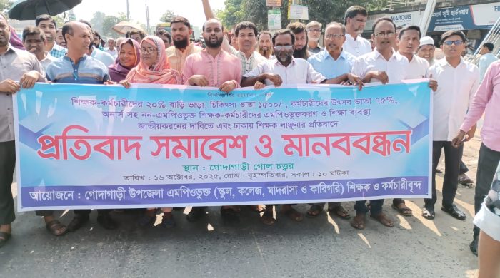 ইব্রাহীম খলিল, নবীনগর (ব্রাহ্মণবাড়িয়া) প্রতিনিধি: এমপিওভুক্ত শিক্ষা জাতীয়করণ প্রত্যাশী জোটের কেন্দ্রীয় কর্মসূচির অংশ হিসেবে ব্রাহ্মণবাড়িয়ার নবীনগরে বে-সরকারি স্কুল, কলেজ, মাদরাসা ও কারিগরি শিক্ষা প্রতিষ্ঠানের শিক্ষক ও কর্মচারীরা ন্যায্য দাবি আদায়ের