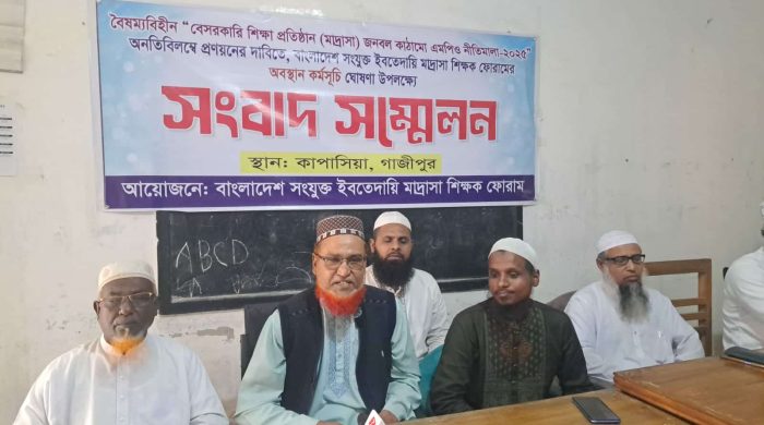 মোঃ আলমগীর মোল্লা গাজীপুরে কাপাসিয়া উপজেলার রায়েদ দারুস সুন্নাহ দাখিল মাদ্রাসার অফিস কক্ষে ১৯ নভেম্বর বুধবার বাংলাদেশ সংযুক্ত ইবতেদায়ি মাদ্রাসা শিক্ষক ফোরামের আয়োজনে এক সংবাদ সম্মেলন অনুষ্ঠিত হয়। সংবাদ সম্মেলনে