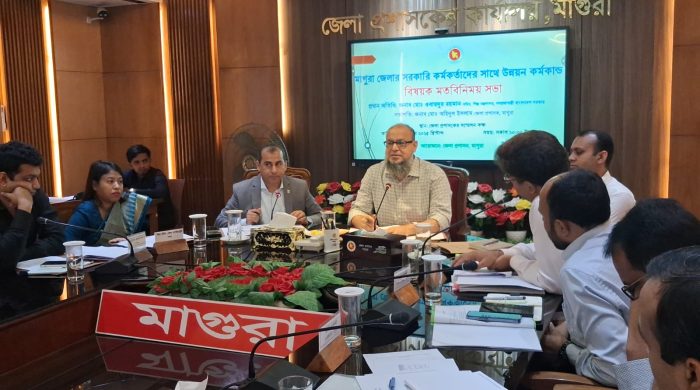 মোঃ সাইফুল্লাহ, মাগুরা প্রতিনিধিঃ। মাগুরায় জেলার সরকারি কর্মকর্তাদের সাথে শিল্প সচিবের উন্নয়ন কর্মকাণ্ড বিষয়ক মতবিনিময় সভা ২৫ অক্টোবর শনিবার সকাল ১০ টায় জেলা প্রশাসকের সম্মেলন কক্ষে অনুষ্ঠিত হয়েছে। সভায় জেলা