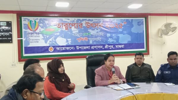 মােঃসাইফুল্লাহ ; মাগুরায় শ্রীপুর উপজেলা পরিষদ মিলনায়তনে রবিবার দুপুরে ‘তারুণ্যের উৎসব -২০২৫’ উপলক্ষে প্রস্তুতি সভা অনুষ্ঠিত হয়েছে। সভায় সভাপতিত্ব করেন উপজেলা নির্বাহী অফিসার রাখী ব্যানার্জী। সভায় অন্যান্যদের মধ্যে উপস্থিত ছিলেন