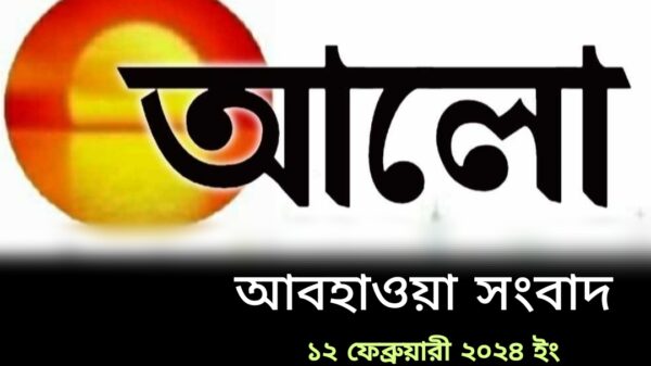 আলো নিউজ ১২.ফেব্রুয়ারী ২৪ সোমবার  সন্ধ্যা ০৬ টা থেকে) পরবর্তী ২৪  ঘন্টার আবহাওয়ার পূর্বাভাসে আবহাওয়া অফিস থেকে বলা হয়েছে ভারতীরয়  উপমহাদেশীয় উচ্চচাপ বলয়ের বর্ধিতাংশ বিহার ও তৎসংলগ্ন ভূমির উপর অবস্থান