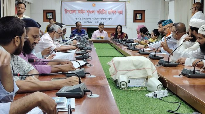 মোঃ আলমগীর মোল্লা গাজীপুরের কালীগঞ্জে উপজেলা আইন শৃঙ্খলা ও সমন্বয় কমিটির মাসিক সভা অনুষ্ঠিত হয়েছে। বৃহস্পতিবার (৩০ অক্টোবর) সকালে উপজেলা প্রশাসনের আয়োজনে পরিষদের সম্মেলন কক্ষে সভায় সভাপতিত্ব করেন উপজেলা নির্বাহী