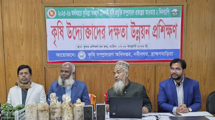 ইব্রাহীম খলিল, নবীনগর (ব্রাহ্মণবাড়িয়া) প্রতিনিধি: ব্রাহ্মণবাড়িয়ার নবীনগরে কৃষিকে লাভজনক ও টেকসই খাতে রূপান্তরের লক্ষ্যে উদ্যোক্তা কৃষকদের নিয়ে দুই দিনব্যাপী দক্ষতা উন্নয়ন প্রশিক্ষণ অনুষ্ঠিত হয়েছে। গত ৭ ও ৮ জানুয়ারি উপজেলা