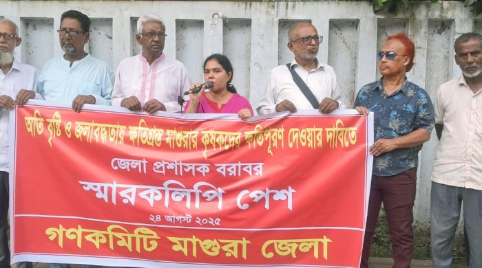মোঃ সাইফুল্লাহঃ মাগুরায় অতিবৃষ্টি ও জলাবদ্ধতায় ক্ষতিগ্রস্থ কৃষকদের ক্ষতিপূরণ দেওয়ার দাবিতে গণক কমিটির উদ্যোগে জেলা প্রশাসক বরাবর গণকমিটি স্মারকলিপি পেশ করেছে। রবিবার (২৪ আগস্ট) বেলা ১১টায় স্মারকলিপি পেশের পূর্বে চৌরঙ্গী