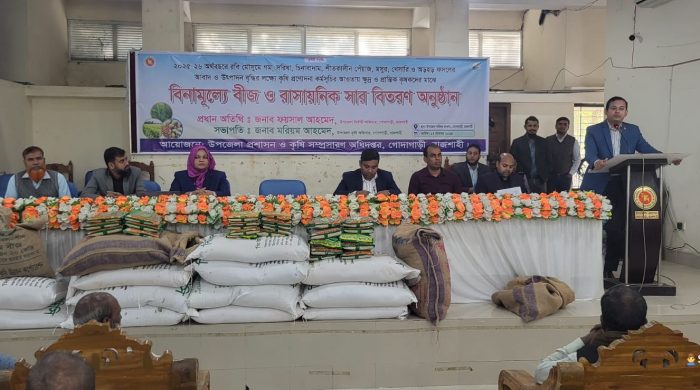 অলিউল্লাহ, গোদাগাড়ী, রাজশাহী :- গোদাগাড়ীতে বিনামূল্যে বীজ ও রাসায়নিক সার বিতরণ করা হয়েছে। ২০২৫-২৬ অর্থবছরে রবি মৌসুমে গম, সরিষা, চিনাবাদাম, শীতকালীন পেঁয়াজ, মসুর, খেসারি ও অড়হড় ফসলের আবাদ ও উৎপাদন