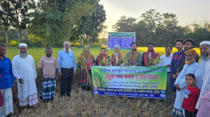 ইব্রাহীম খলিল, নবীনগর (ব্রাহ্মণবাড়িয়া): ব্রাহ্মণবাড়িয়ার নবীনগর উপজেলার লাউর ফতেহপুর ইউনিয়নের বাড়িখলা গ্রামে ব্রি উদ্ভাবিত নতুন জাত ব্রি ধান-১০৩ এর বাম্পার ফলন কৃষকদের মাঝে ব্যাপক সাড়া ফেলেছে। বুধবার দুপুরে পার্টনার প্রকল্পের
