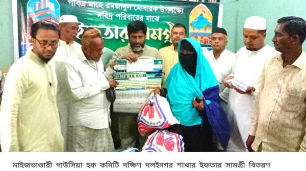 রাউজান প্রতিনিধি: মাইজভাণ্ডারী গাউসিয়া হক কমিটি বাংলাদেশ দক্ষিণ দলইনগর শাখার উদ্যোগে পবিত্র মাহে রমজানুর মোবারক উপলক্ষে হতদরিদ্র পরিবারের মাঝে ইফতার সামগ্রী ও নগদ অর্থ প্রদান করা হয়েছে। শনিবার (১ মার্চ)