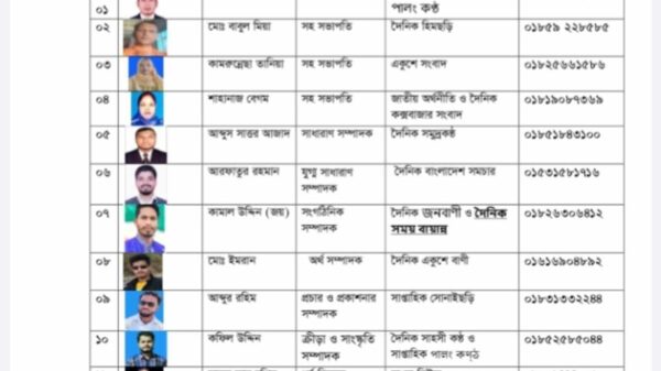 প্রেস বিজ্ঞপ্তিঃ জাতীয় সাংবাদিক সংস্থা’র সাংগঠনিক কার্যক্রম গতিশীল করার লক্ষে কক্সবাজার জেলা কমিটির সিদ্ধান্ত মোতাবেক আগামী ১ বছরের জন্য জাতীয় সাংবাদিক সংস্থা (জেএসএস), উখিয়া শাখা কমিটি অনুমোদন দিয়েছেন। জেলা কমিটি