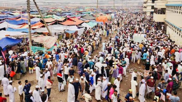 এস কে সানি টঙ্গী ( গাজীপুর ): বিশ্ব ইজতেমার প্রথম পর্বে দেশের সবচেয়ে বড় জুমার নামাজের জামাত হয়েছে। শুক্রবার দুপুর ১টা ৪০ মিনিটে জুমার জামাত শুরু হয়। নামাজে ইমামতি করেন