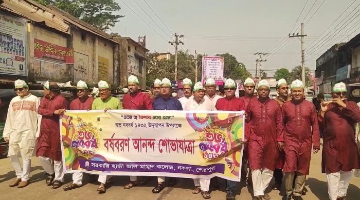 হারুনুর রশিদ শেরপুর প্রতিনিধি: শেরপুরের নকলায় নানা আয়োজনের মধ্য দিয়ে বাংলা নববর্ষকে বরণ করেছে উপজেলা প্রশাসন। আয়োজনের মধ্যে ছিল বর্ষবরণ আনন্দ শোভাযাত্রা, উপজেলা পরিষদ মুক্ত মঞ্চে সাংস্কৃতিক অনুষ্ঠান, পুরস্কার বিতরণ