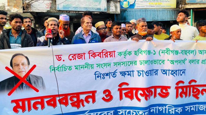 নবীগঞ্জ (হবিগঞ্জ) প্রতিনিধি।। হবিগঞ্জ-১ (নবীগঞ্জ–বাহুবল) আসনে বিএনপির মনোনীত প্রার্থী ড. রেজা কিবরিয়া কর্তৃক ওই আসনের সাবেক সকল সংসদ সদস্যকে ঢালাওভাবে ‘অপদার্থ’ বলে আখ্যায়িত করার প্রতিবাদে এবং এ ধরনের বক্তব্যের জন্য