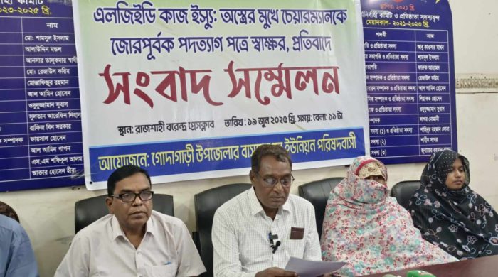 জোরকরে চেয়ারম্যানকে পদত্যাগপত্রে স্বাক্ষর, সংবাদ সম্মেলনে অভিযোগ রাজশাহীর গোদাগাড়ী উপজেলার ৮ নং বাসুদেবপুর ইউনিয়ন পরিষদের চেয়ারম্যান নজরুল ইসলামকে জোরকরে পদত্যাগ পত্রে স্বাক্ষর করিয়ে নেয়া হয়েছে। বৃহস্পতিবার বেলা ১১টায় রাজশাহী বরেন্দ্র