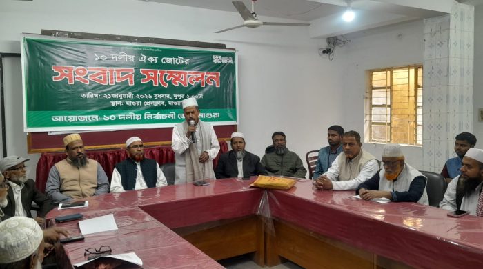 ্মোঃ সাইফুল্লাহ, মাগুরা প্রতিনিধি// চলো একসাথে গড়ি বাংলাদেশ এ শ্লোগান নিয়ে মাগুরা প্রেসক্লাব মিলনায়তনে বুধবার দুপুরে ১০ দলীয় ঐক্য জোটের আয়োজনে সংবাদ সম্মেলন অনুষ্ঠিত হয়েছে। সংবাদ সম্মেলনে বক্তব্য রাখেন ১০