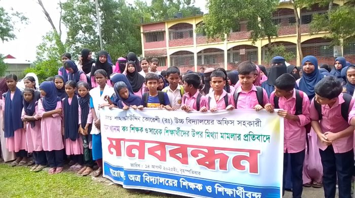 নবীগঞ্জ(হবিগঞ্জ)থেকে।। হবিগঞ্জের নবীগঞ্জ উপজেলার বাউশা ইউনিয়নের হরিধর পুরে হযরত শাহ্ তাজ উদ্দিন কোরেশী (র:) উচ্চ বিদ্যালয়ে শিক্ষক, শিক্ষার্থী কর্তৃক মানববন্ধন ও বিক্ষোভ মিছিল অনুষ্ঠিত হয়েছে৷ ১৪ আগষ্ট বেলা ২টায় অত্র