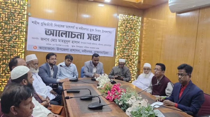 ইব্রাহীম খলিল, নবীনগর (ব্রাহ্মণবাড়িয়া) প্রতিনিধি: শহীদ বুদ্ধিজীবী দিবসের তাৎপর্য ও নবীনগর মুক্ত দিবস উপলক্ষে ব্রাহ্মণবাড়িয়ার নবীনগরে এক আলোচনা সভা অনুষ্ঠিত হয়েছে। রোববার (১৪ ডিসেম্বর) দুপুরে উপজেলা প্রশাসনের আয়োজনে উপজেলা পরিষদ