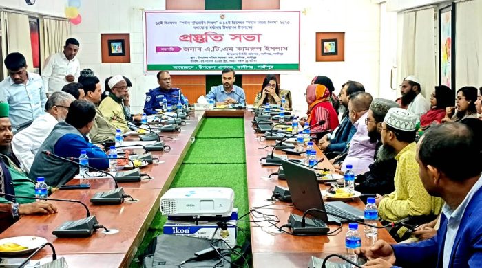 মোঃ আলমগীর মোল্লা গাজীপুরের কালীগঞ্জ উপজেলা প্রশাসনের উদ্যোগে শহীদ বুদ্ধিজীবী ও মহান বিজয় দিবস উদযাপন উপলক্ষ্যে প্রস্তুতিমূলক আলোচনা সভা অনুষ্ঠিত হয়েছে। বৃহস্পতিবার (২৭ নভেম্বর) সকালে উপজেলা পরিষদ সম্মেলন কক্ষে উপজেলা