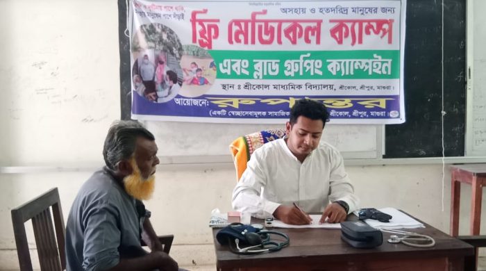 মোঃ সাইফুল্লাহ, মাগুরা: মাগুরার শ্রীপুরে স্বেচ্ছাসেবী সংগঠন রুপান্তরের উদ্যোগে ফ্রি মেডিকেল ক্যাম্প অনুষ্ঠিত হয়েছে। শুক্রবার সকালে শ্রীকোল মাধ্যমিক বিদ্যালয় প্রাঙ্গণে এ ফ্রি মেডিকেল ক্যাম্প অনুষ্ঠিত হয়। এ সময় উপস্থিত ছিলেন