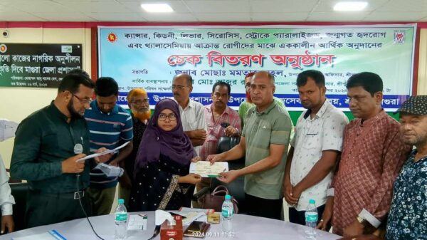 মোঃ সাইফুল্লাহ ; মাগুরার শ্রীপুর উপজেলা পরিষদ মিলনায়তনে বুধবার বেলা সাড়ে ১১টার দিকে ছয়টি দুরারোগ্য ব্যাধিতে আক্রান্ত রোগীদের মাঝে এককালীন আর্থিক অনুদানের চেক বিতরণ করা হয়েছে। উপজেলা প্রশাসন ও উপজেলা
